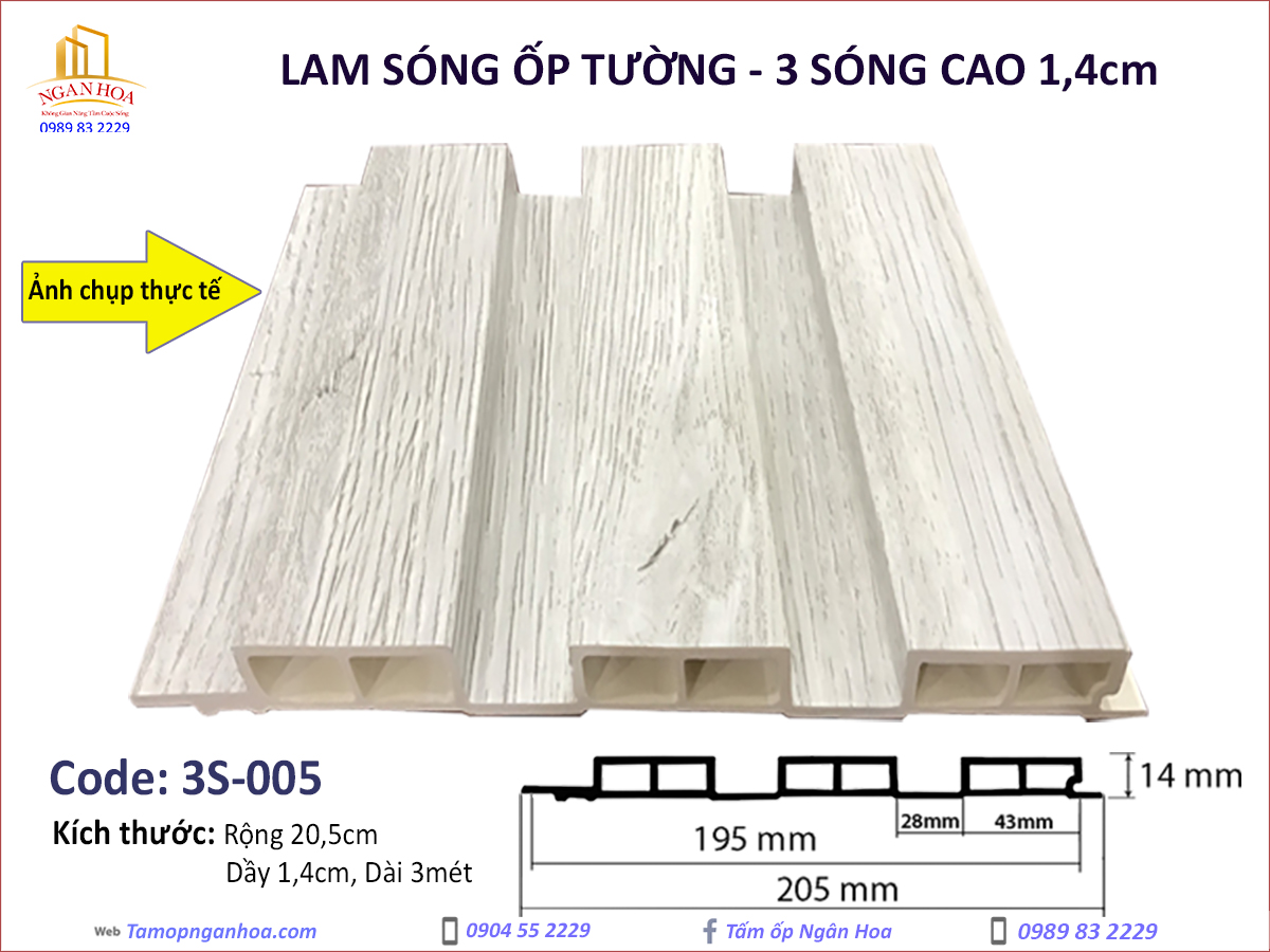 Hình ảnh chụp thực tế và thông số mặt cắt kỹ thuật Lam sóng ốp tường Land 3S-005