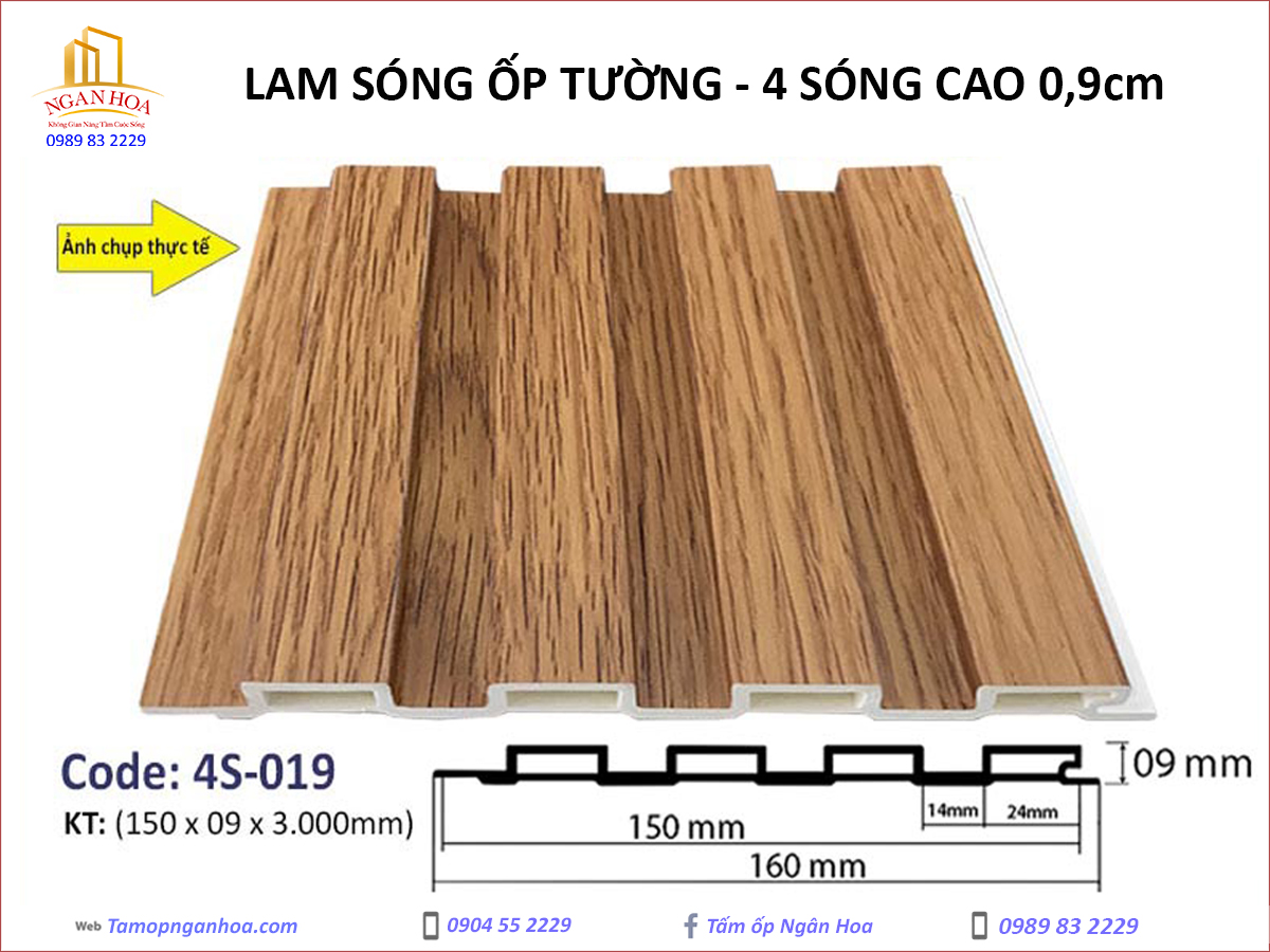 Hình ảnh chụp thực tế và thông số mặt cắt kỹ thuật Lam sóng ốp tường Land 4S-019