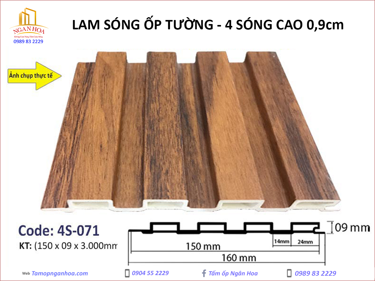 Hình ảnh chụp thực tế và thông số mặt cắt kỹ thuật Lam sóng ốp tường Land 4S-070