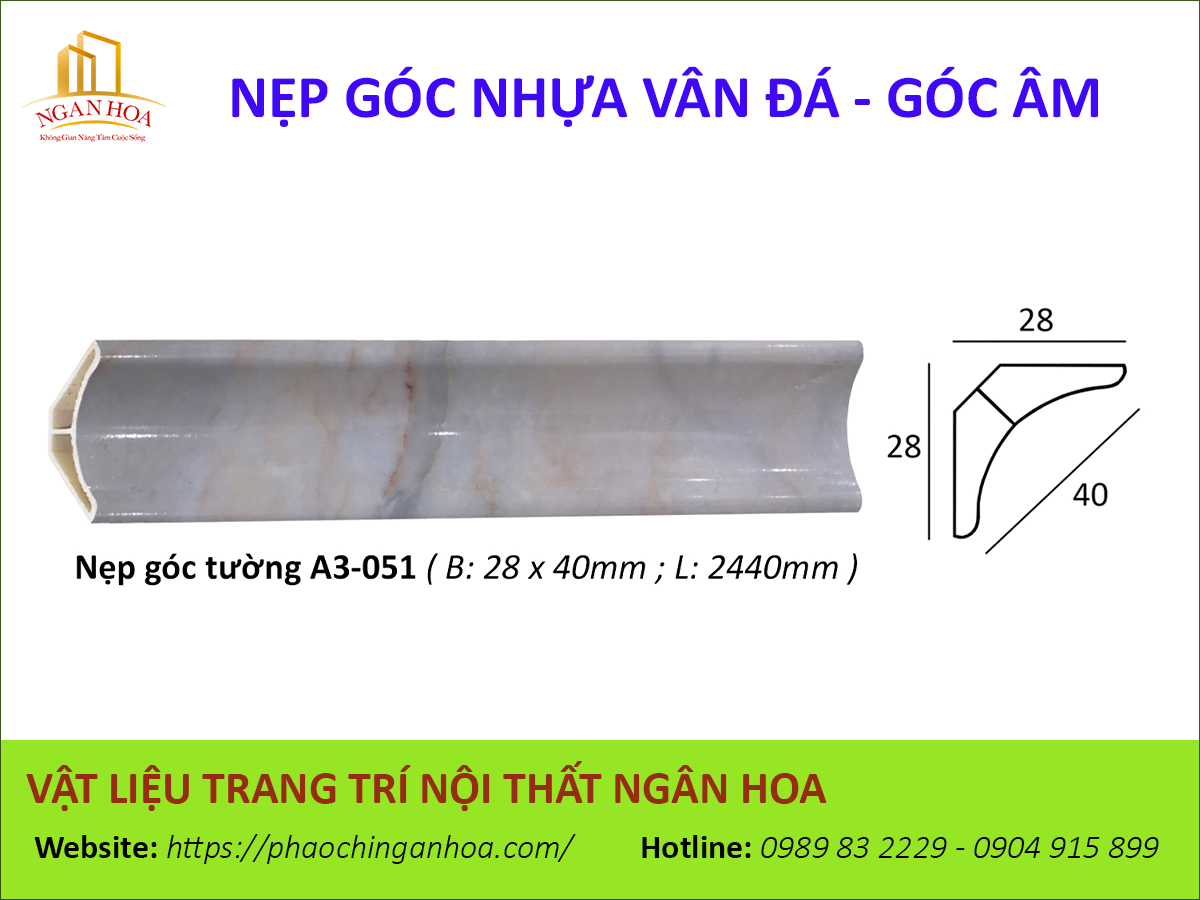 Nẹp góc nhựa vân đá A3-051 còn được gọi là nẹp góc âm, nẹp nhựa góc trong. Hãy cùng tìm hiểu thông tin của nẹp góc nhựa này qua bài viết sau đây nhé.