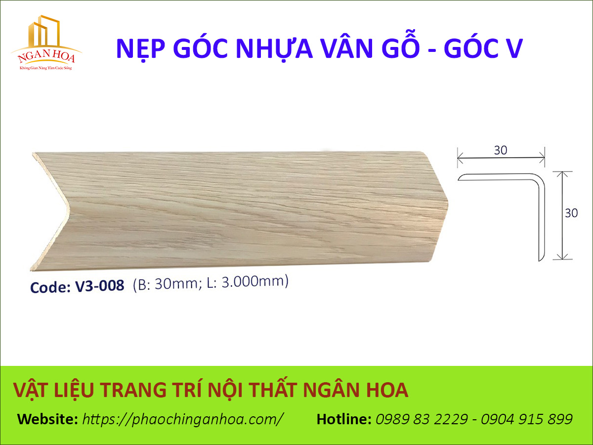 Nẹp góc nhựa vân gỗ V3-008 hay còn gọi là nẹp góc nhựa, nẹp chữ V, nẹp góc dương, nẹp góc tường, nẹp bo góc tường... Hãy cùng tìm hiểu thông tin chi tiết về nẹp góc nhựa này nhé.