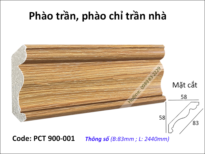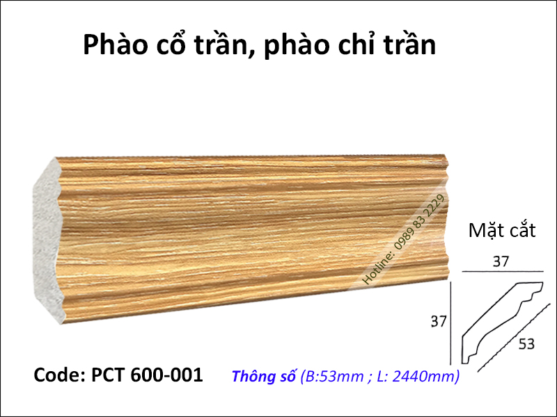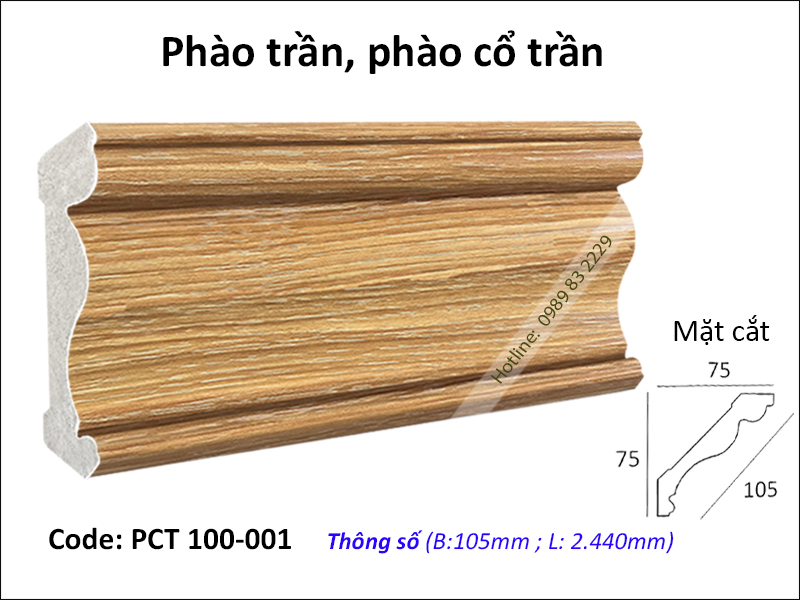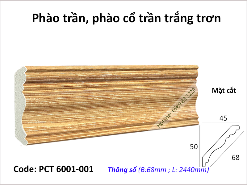 Phào trần vân gỗ màu là sản phẩm được làm từ chất liệu nhựa PS ( Polystiren) mặt ngoài được phủ phim vân gỗ sồi mỹ. Sản phẩm có vẻ bề ngoài tự nhiên giống hệt với phào trần được làm bằng gỗ sồi Mỹ.