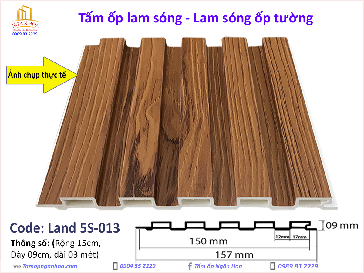 Hình ảnh chụp thực tế và thông số mặt cắt kỹ thuật Tấm ốp lam sóng Land 5S-013